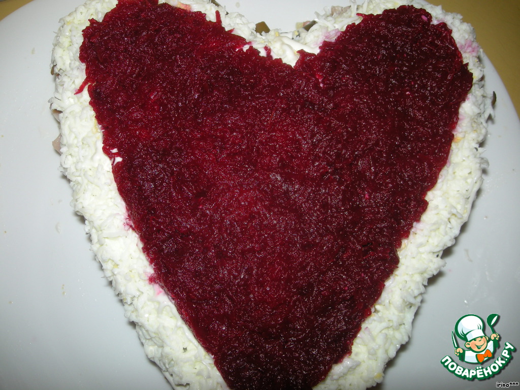 | Просто вкусный салатик. Готовила на День Св. Валентина. Может кому-то пригодится идейка украшения! |