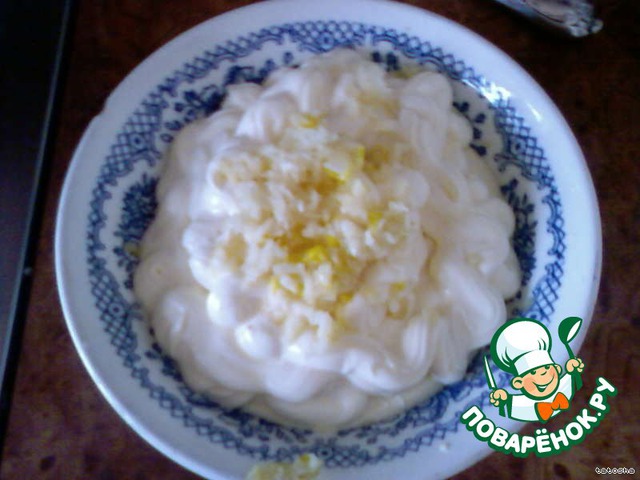 Майонез смешать с чесноком. Чеснок я пропускала через чесночницу.