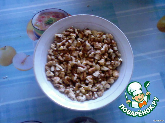 - оставшиеся орехи, смазываем майонезом с чесноком (обильно)