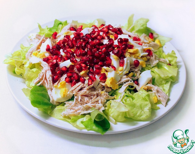 Легкий салат с куриным филе, яйцом и гранатовыми зернами