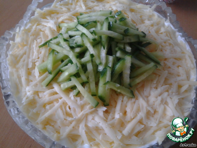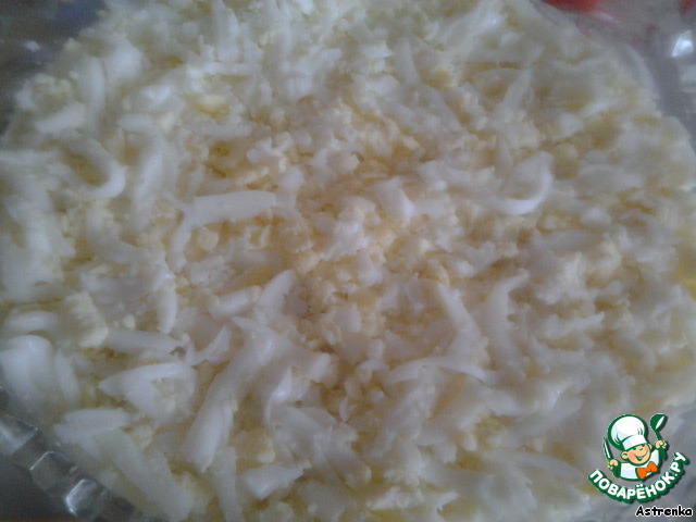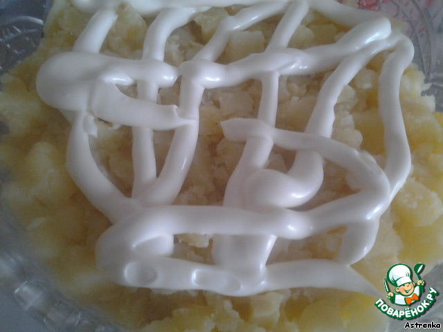 Затем слой грибов (у меня их нет). Майонезом грибы не мажем!