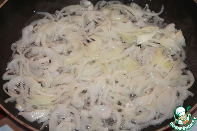 Пассируем лук на растительном масле. Немного, до мягкости. Не надо чтобы он был золотой.