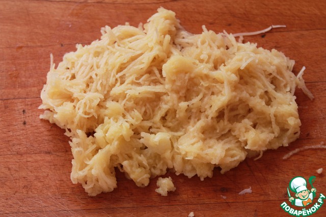 Теперь все ингредиенты укладываем в салатник слоями. Вы можете использовать любую форму для своего салата. Не старайтесь делать его идеально ровным. Он будет смотреться намного естественнее. Теперь маленькая хитрость. Картофель мы смешиваем с майонезом и чесноком и только после этого укладываем на тарелку. Так будет очень вкусно. Можете даже попробовать когда перемешаете.