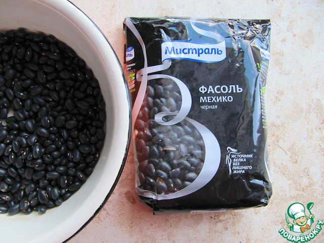 Теплый салат из черной фасоли