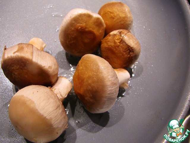 Грибы очистить и быстро обжарить на сильно разогретой сковородке (чтобы не потеряли сочность).