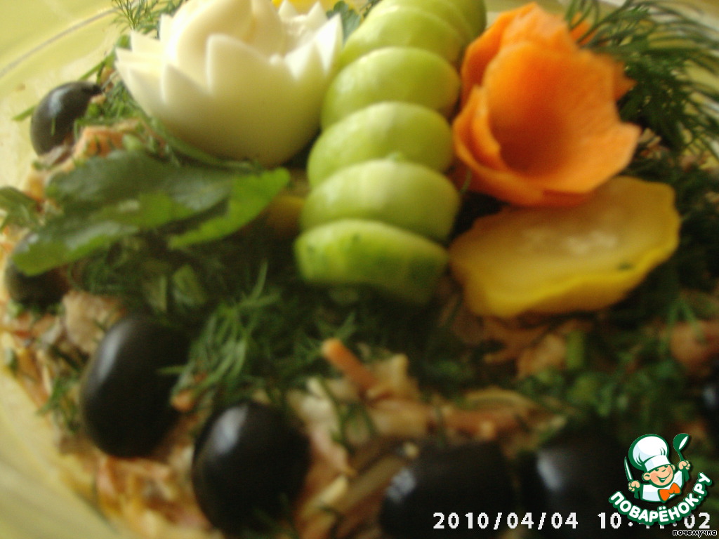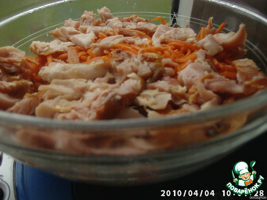 | Для любителей сочетания корейской моркови и ..... Приготовила первый раз такой салат, ничего, вкусно! |
