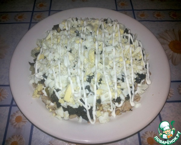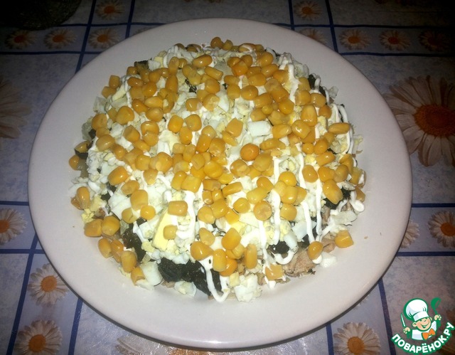 Салат выкладываем слоями, смазывая майонезом по вкусу, в следующей очередности: