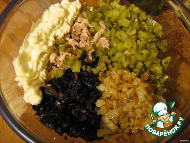 Соединить все вышеперечисленные ингредиенты, заправить майонезом