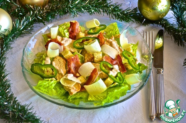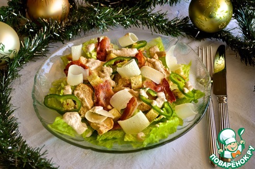 | «Цезарь» - это, наверное, один из первых «не наших» салатов, который прижился и стал для многих любимым. И это понятно: сочетание свежих салатных листьев, хрустящих крутонов и пикантной майонезной заправки с анчоусами и Пармезаном не могут оставить вас равнодушным. В данной версии я предлагаю использовать куриное филе, запеченное в апельсиновом соке, и кусочки поджаренного бекона, чтобы салат был действительно праздничным. |