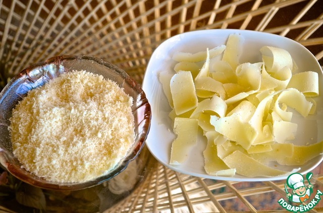 6. Из одной трети сыра сделать стружку, а оставшийся натереть на мелкой терке.