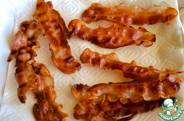 7. Бекон обжарить и обсушить на бумажных салфетках.