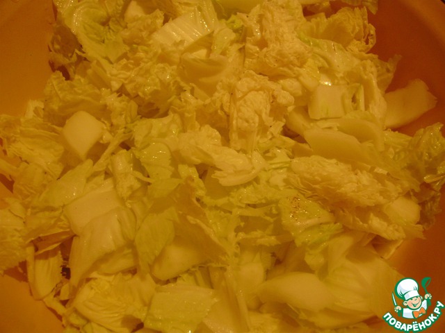 Капусту нарезаем кусочками.