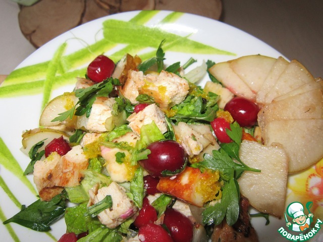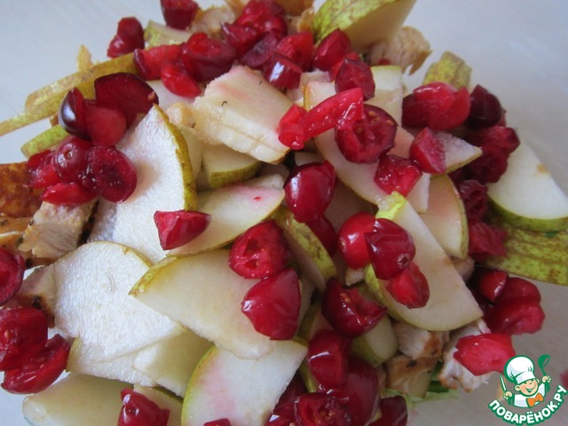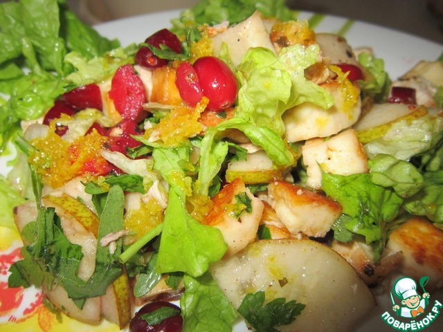 | Довольно необычное сочетание жареного сыра и курицы с грушей, клюквой и зеленью никого не оставит равнодушным! Это поистине весеннее блюдо! Оно радует яркостью цветов и оригинальностью вкуса! |