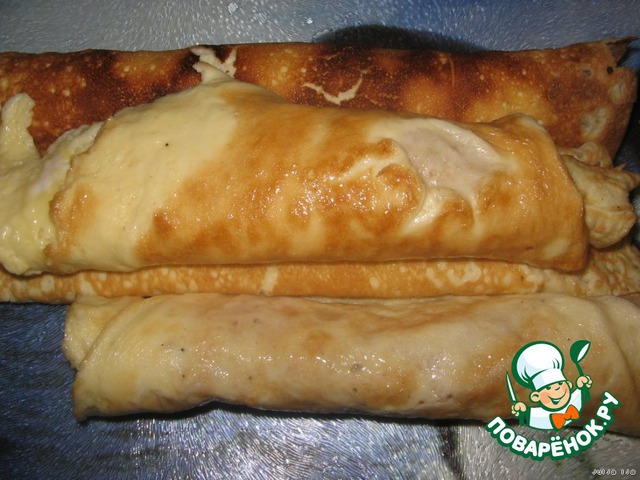 Остужаем блинчики, потом сворачиваем их в рулетики.