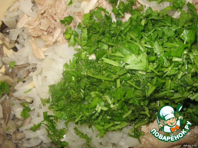 Мелко режем зелень.
