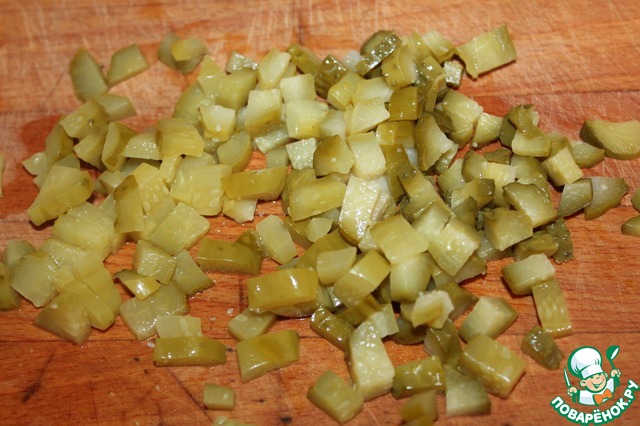 Огурцы нарезаем кубиками. Курагу нарезаем кубиками.