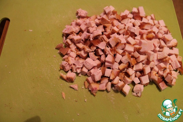 Омлет тоже нужно порезать кубиками (ну или как вам нравится)
