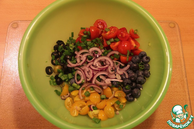 Но, увы, моя жена обожает оливки и не представляет салата без них. В течение 3 дней я накупил овощей, фруктов и ягод для работы
