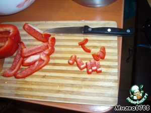 Режем наше филе, добавляем к нему помидорки (я не люблю острое, поэтому перец чили добавлять в салат не стала, просто добавила его, когда запекала).