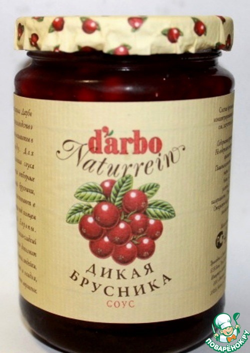 Для заправки салата и для кусочков курицы нам понадобится брусничный соус ТМ "D'arbo".