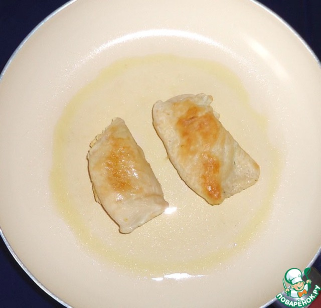 Обжарить на оливковом масле с обеих сторон до легкого золотистого цвета.