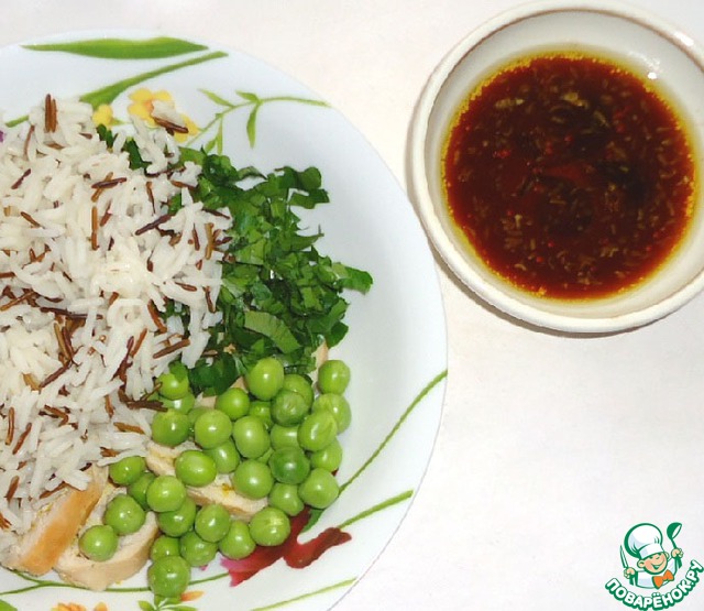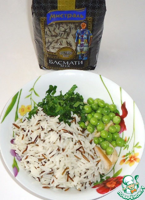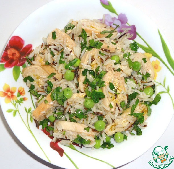 | Вкусный необычный, нарядный салат из курицы с рисом Басмати MIX, зеленым горошком, с пикантной ноткой. |