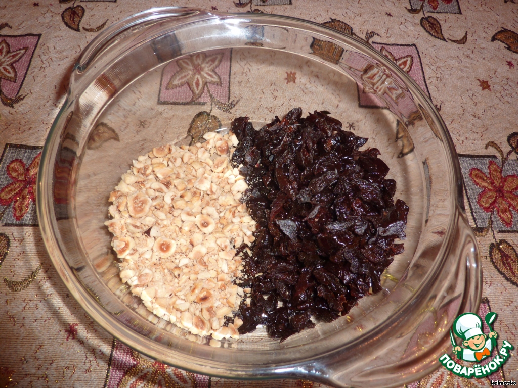 Фундук очищаем от шелухи (я его еще дополнительно обжариваю до румяных бочков, мне так больше нравится) и отправляем в блендер немного подробить.