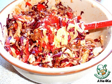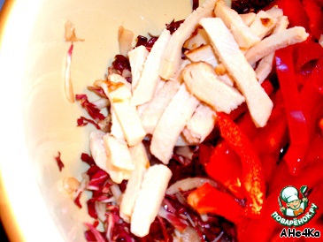 Перец нарезаем соломкой и добавляем к "Радичио".