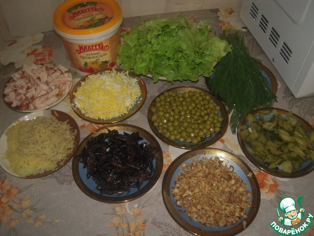 | Ни одно торжество без салатов не обходится. Оливье и селедка под шубой, конечно же, очень вкусные салаты, но ими никого не удивишь. Согласитесь, всегда хочется приготовить на праздничный стол что-нибудь необычное. Предлагаю вам воспользоваться рецептом моего любимого салата. вы не пожалеете: сочетание копченой грудки, чернослива и майонезной заправки - это очень вкусно! Готовьте и пробуйте! |