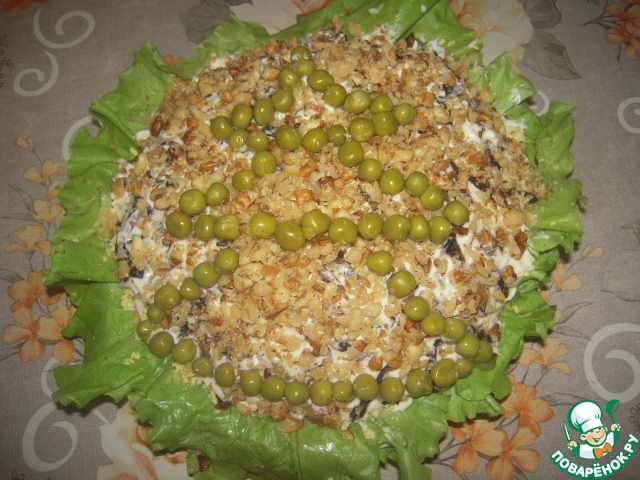 Сверху посыпать салат измельченными орехами