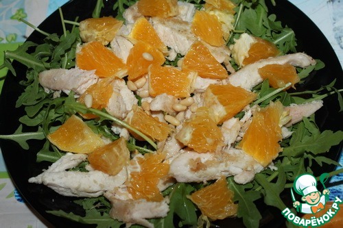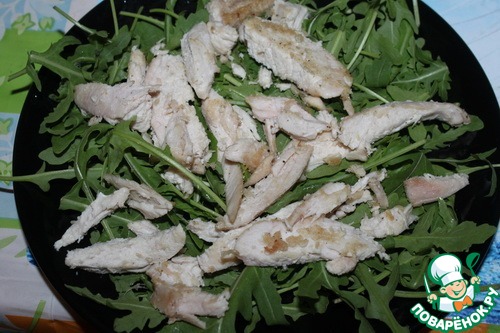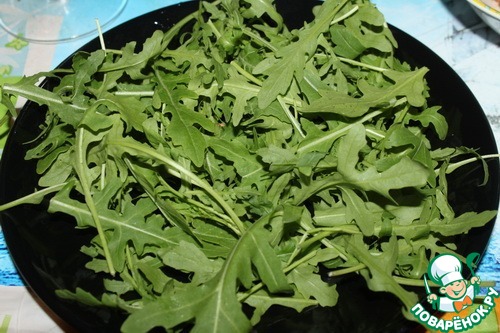 На тарелку (или в салатник) выложить вымытую и высушенную рукколу.