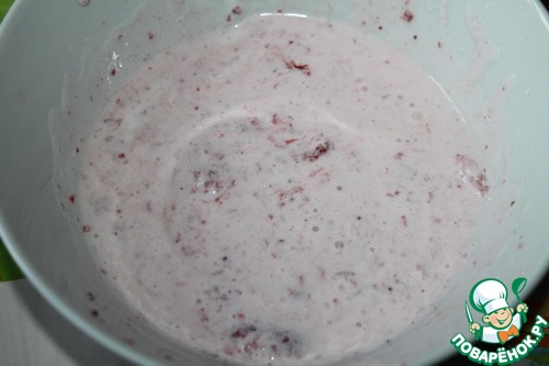 Для заправки соединить клубнику и йогурт, взбить блендером. Соль, специи по вкусу (я ничего не добавляю). Можно добавить 1 ч. л. майонеза.