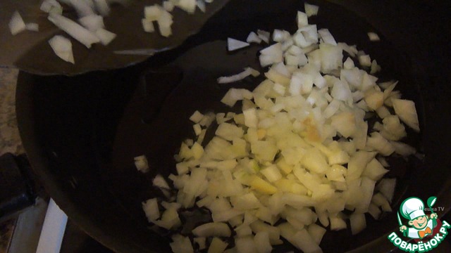 3. Тушим нарезанный кубиками лук на маленьком огне.