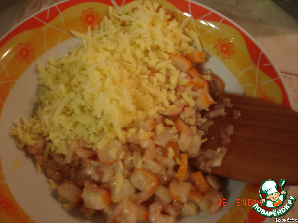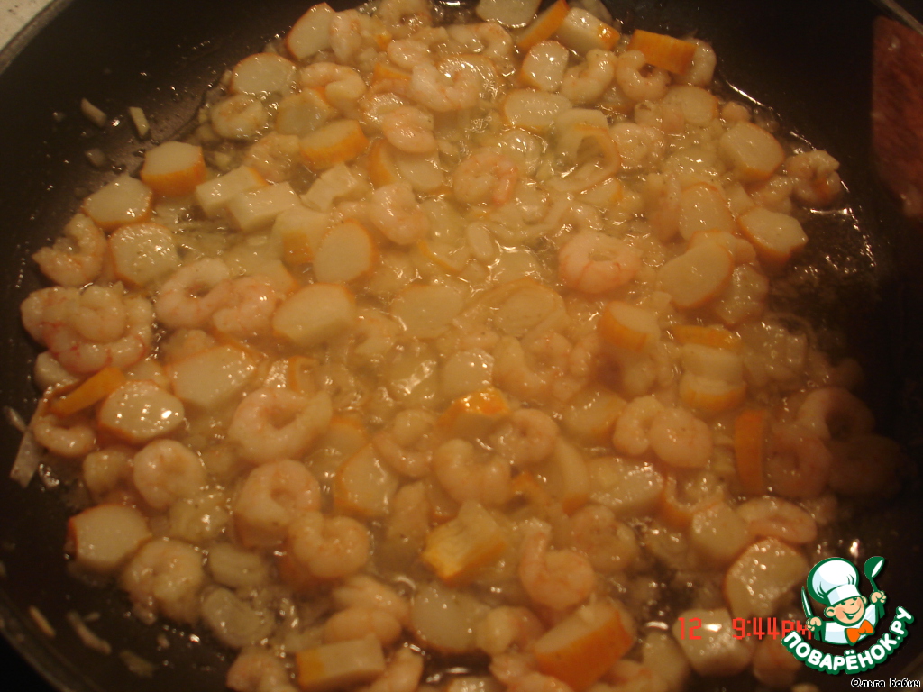 Добавить крабовое мясо или палочки (что есть под рукой).