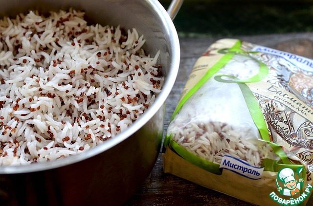 В кастрюлю насыпать Басмати Микс. Добавить 1/2 ч. л соли. Следуя инструкции на упаковке, отварить до готовности.