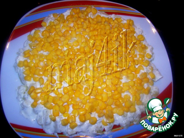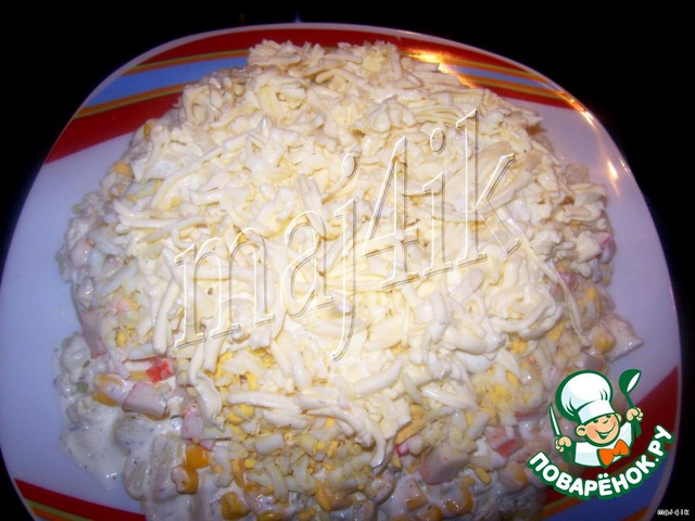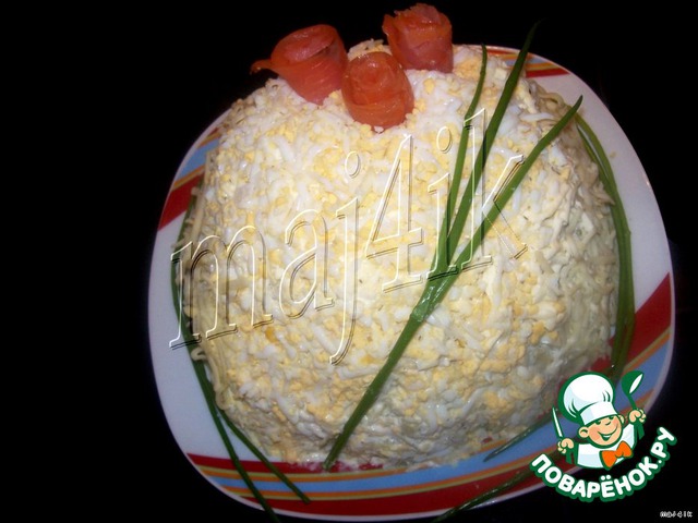 Я во второй раз поменяла местами слои с яйцами и с плавленным сырком.