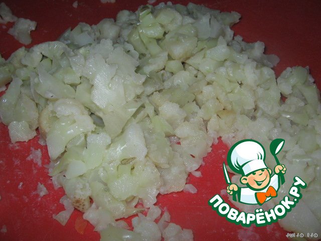 Цветную капусту и яйца отварить. Капусту в подсоленной воде, до готовности. Яйца - вкрутую.