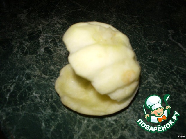 Берем 1 яблоко, чем больше тем лучше. Вырезаем из него ракушку. И сразу смазываем лимонным соком, чтобы яблочко не потемнело. Если крышка отвалилась - не беда, ее с легкостью можно прикрепить обратно с помощью зубочисток . При желании можно затонировать ракушку в любой цвет.Я окрасила в розовый цвет соком жимолости.На фото получилось ярче чем в жизни.
