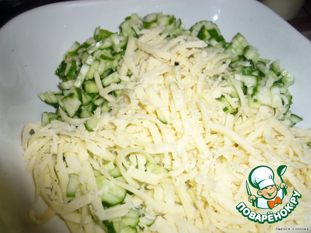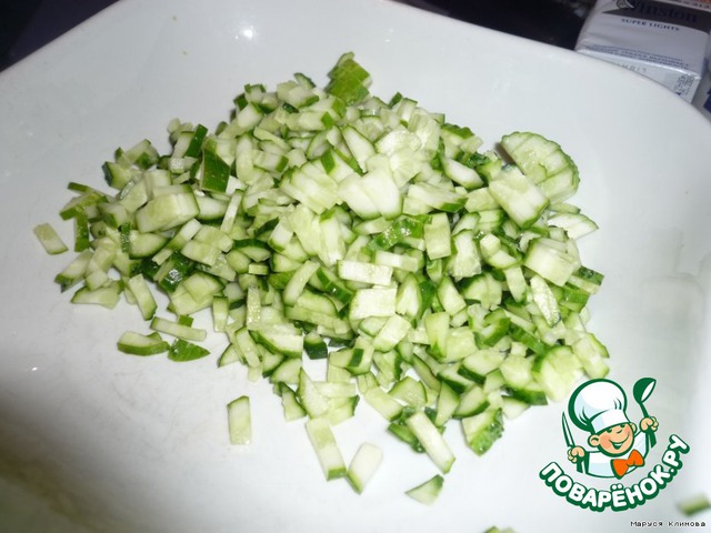 Огурцы мелко нарезать.