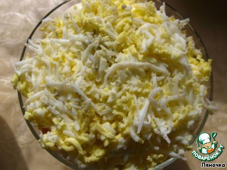 Если салат готовить заранее, то нужно будет либо накрыть его пленкой, либо яйца и сыр натереть перед подачей, чтобы салат не заветривался и выглядел свежим.