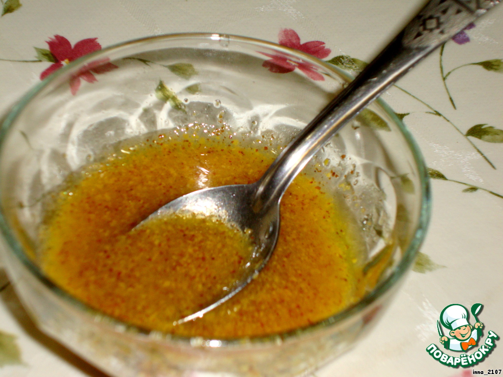 Для заправки горчицу соединить с соком лимона и оливковым маслом. Хорошо размешать.