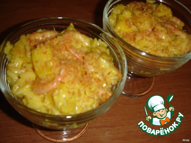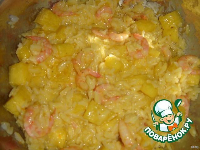 | Скоро день Святого Валентина. Предлагаю Вашему вниманию очень вкусный салат из ананаса и креветок. Пикантность салата в его соусе. |