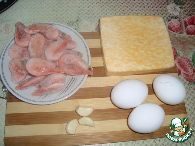 Берём сыр, яйца, креветки, очищаем чеснок.