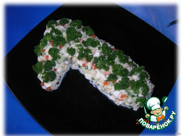 Я выкладывала салат в виде "единички" по случаю Юбилея.