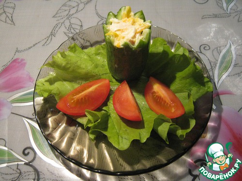 Так как у меня огурцов было мало, а салата получилось много, то блюдо можно украсить так.