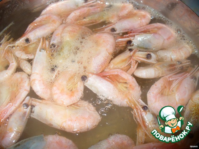 Теперь займемся салатом. Яйца нужно отварить вкрутую. Креветки отварить в подсоленной воде.