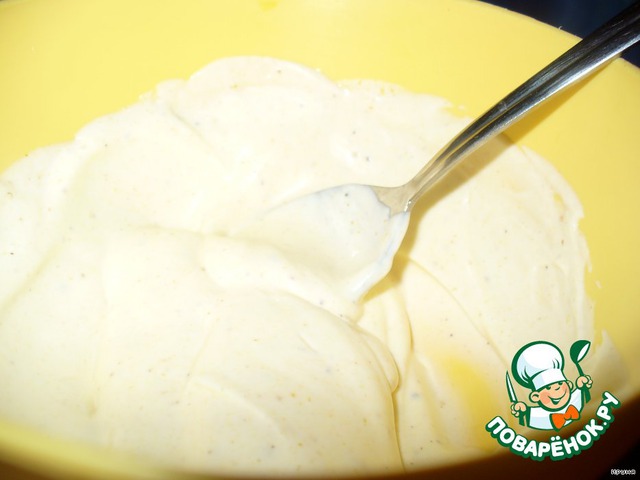 Теперь соус. Майонез вылить в мисочку, добавить карри и свежемолотую смесь перцев по вкусу, хорошо перемешать.