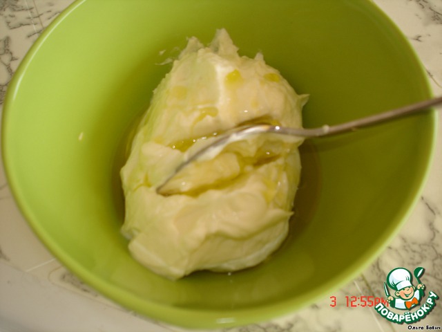 приготовим соус из сметаны, оливкового масла, перчика и чесночка.