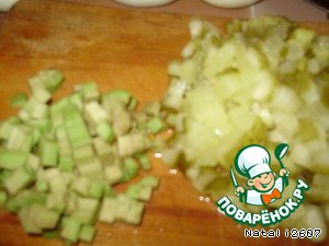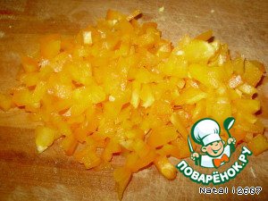 Половину перца сладкого очистить от семян и прожилок. Нарезать мелким кубиком.