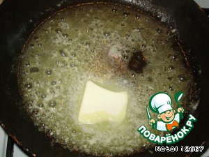 На сковороде (на медленном огне) растопить сливочное масло, чтоб не пригорело.